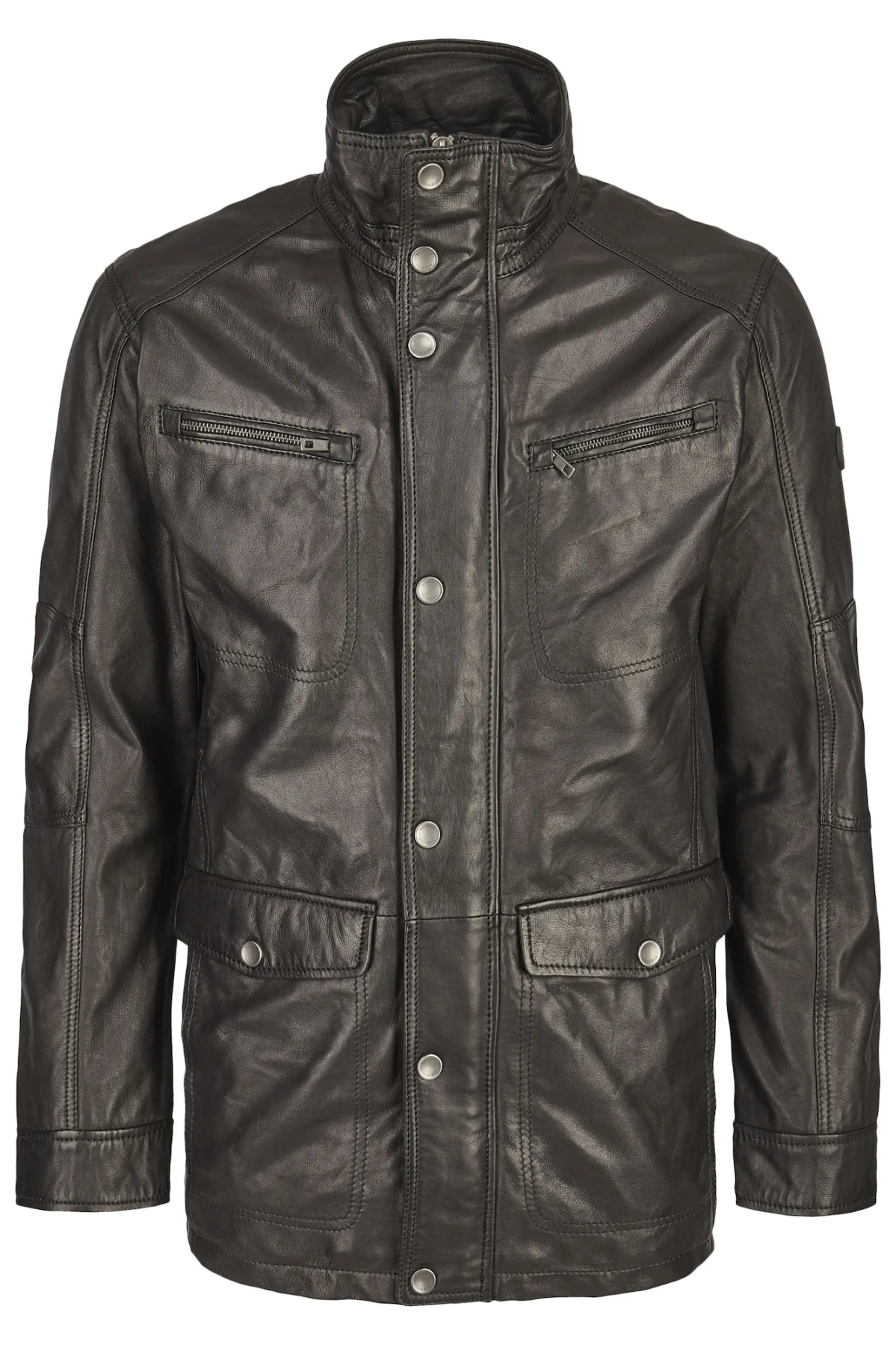 Design: Drukknopsluiting, Ritsvak buiten, Gevoerde zoom/rand, Staande kraag, Verborgen rits, Borstzak, Opzet-/flapzak, Ritszakken aan de zijkant; Type sluiting: Drukknoop; Voering: Licht gevoerd; Materiaal: Leer; Motief: Effen; Extra's: Label patch/label flag, Op staal naden, Stevige stof, Lamsleer; Pasvorm: Normale pasvorm
