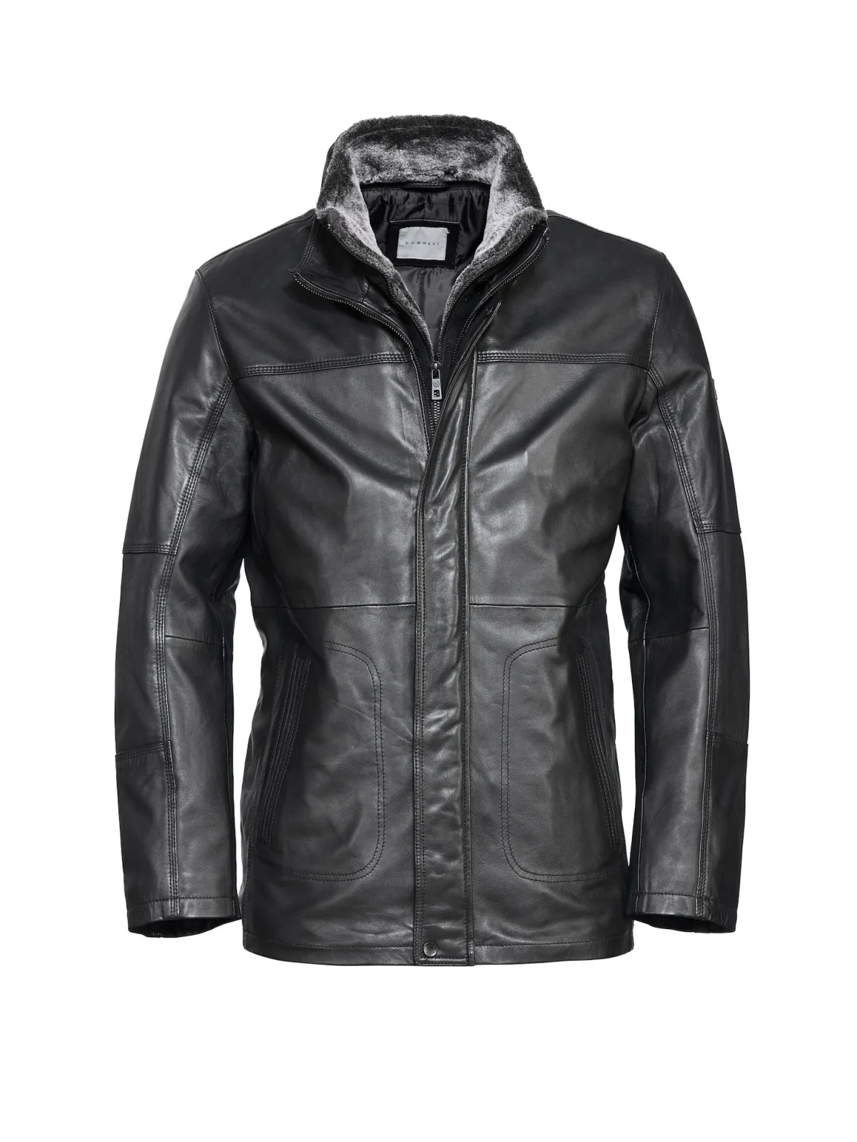 Design: Verborgen rits; Type sluiting: Ritssluiting; Voering: Niet gevoerd; Materiaal: Leer; Motief: Effen; Extra's: Op staal naden; Pasvorm: Slanke pasvorm