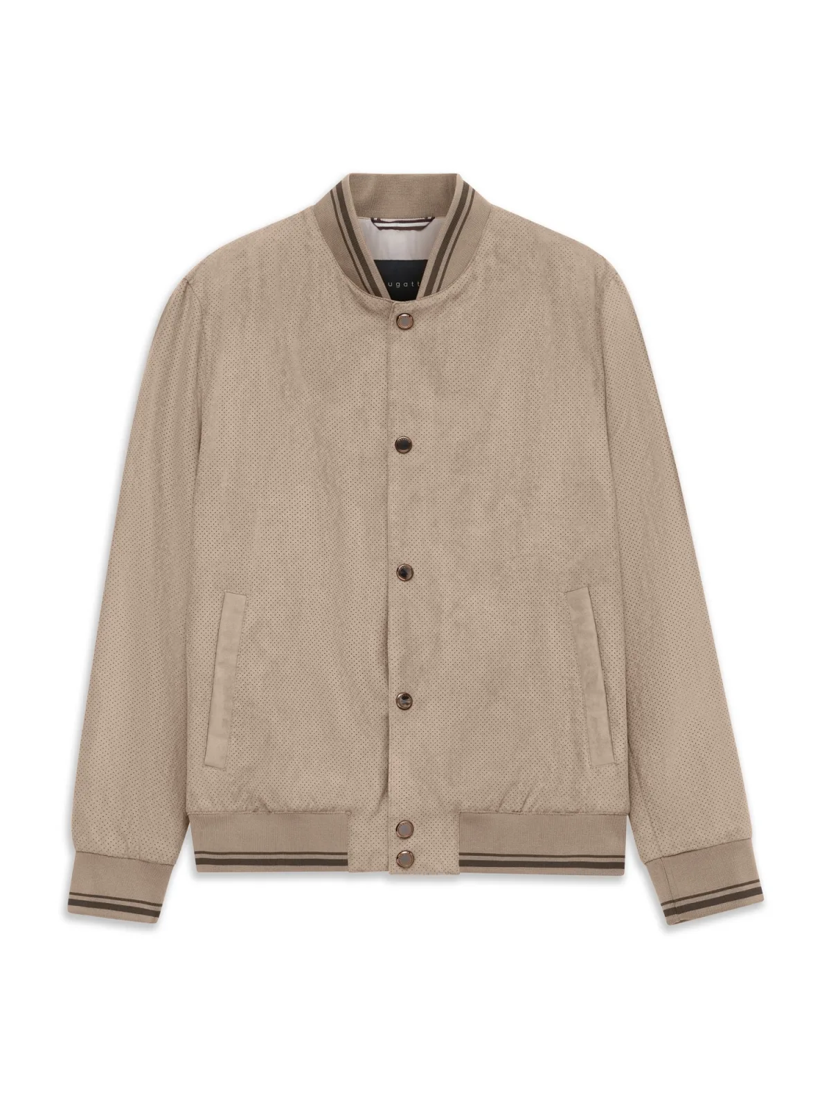 Dit bugatti collegeblouson voor heren combineert sportieve nonchalance met verfijnde elegantie. Het waterafstotende premium suède met geperforeerde details zorgt voor een licht draagcomfort en beschermt je tegelijkertijd betrouwbaar tegen weer en wind. De typische collegekraag en de drukknopen onderstrepen de moderne look, terwijl de steek- en binnenzakken praktische opbergruimte bieden. De blouson heeft een regular fit, zit comfortabel en past perfect bij je urban stijl. Een metgezel die functionaliteit en dolce vita in elke vezel combineert - bravissimo!
