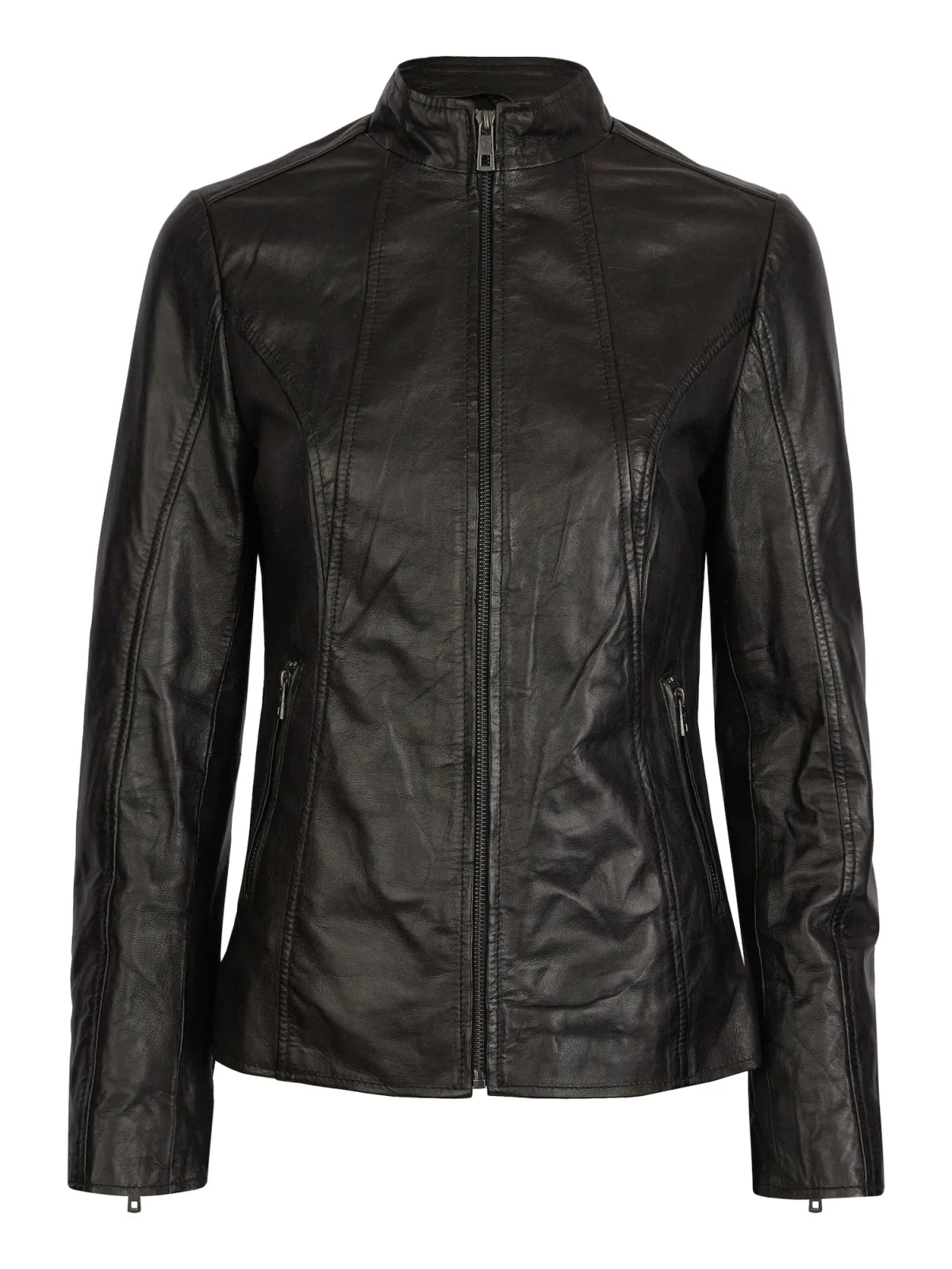 Design: Raglanmouwen, Ritszakken aan de zijkant; Type sluiting: Ritssluiting; Voering: Gedeeltelijk gevoerd; Materiaal: Leer; Motief: Effen; Pasvorm: Slanke pasvorm