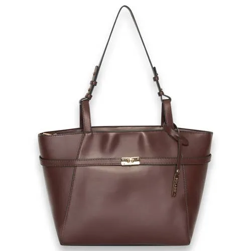 Ga georganiseerd en stijlvol de deur uit met deze donkerbruine Bulaggi shopper voor dames. De tas heeft een rustige, effen uitstraling en past daardoor gemakkelijk bij verschillende outfits, van werk tot weekend. De diepe, warme kleur donkerbruin geeft een verzorgde look en laat zich goed combineren met zowel lichte als donkere tinten. Het imitatieleer heeft een nette structuur en is vormvast, zodat de shopper mooi in model blijft.Praktische shopper in donkerbruin imitatieleer Artikeltype: shopper voor dames, ideaal voor dagelijks gebruik Kleur: donkerbruin, makkelijk te combineren met uiteenlopende kledingstijlen Materiaal: gemaakt van imitatieleer met een effen uitstraling Sluiting: ritssluiting over de bovenkant voor extra zekerheid van je spullen Stijl: tijdloze basic zonder print, geschikt voor zowel werk als vrije tijdRuimte voor al je dagelijkse spullenIn deze shopper neem je eenvoudig je dagelijkse essentials mee, zoals portemonnee, telefoon, sleutels en kleine verzorgingsproducten. De ruime opening met ritssluiting maakt het makkelijk om snel iets te pakken, terwijl alles toch veilig opgeborgen blijft tijdens het reizen, winkelen of een dag op kantoor.Bulaggi: tassen met aandacht voor detailBulaggi staat bekend om tassen met een doordachte vormgeving en een herkenbare stijl. Het merk combineert praktische indelingen met verschillende kleuren en materialen. Zo ontstaat een collectie die goed aansluit op het dagelijks leven, waarin een tas niet alleen handig is, maar ook je outfit rustig aanvult.Een verzorgde, veelzijdige shopper die je dagen net wat overzichtelijker maakt.