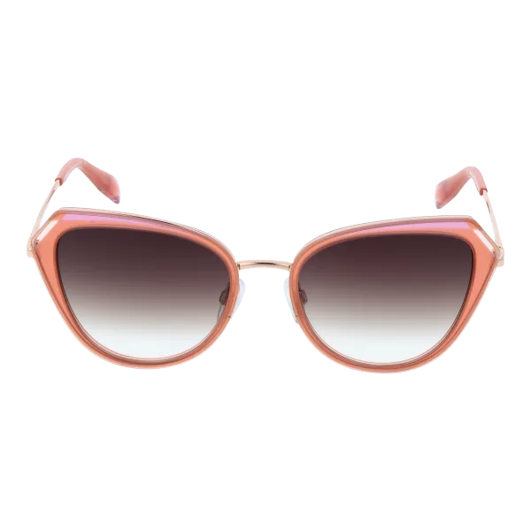 Geslacht: Vrouw Hoofdkleur: Roze Frame kleur: Roze Frame materiaal: Metaal Glas kleur: Bruin Glas materiaal: Kunststof Categorie filteren: 3 Glas-effect: verloop Bescherming: 100% UVA & UVB Maat: 54-19-142 Glas breedte: 54 Glas hoogte: 45 Web breedte: 19 Framebreedte: 145 Tempel lengte: 142 Stijl: Vlinder Frame stijl: Full-Rim Veer scharnier: Nee Extras: Geen extra's Leveringsomvang: Etui Country: China