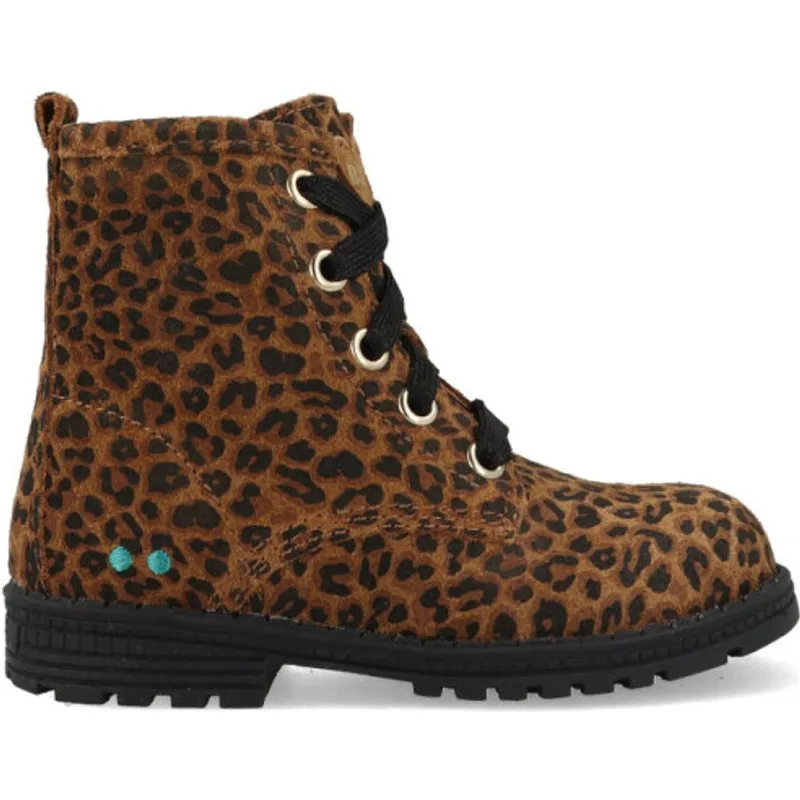 BunniesJR Thijs Trots Meisjes Biker Boots BruinPrint Leer Veters