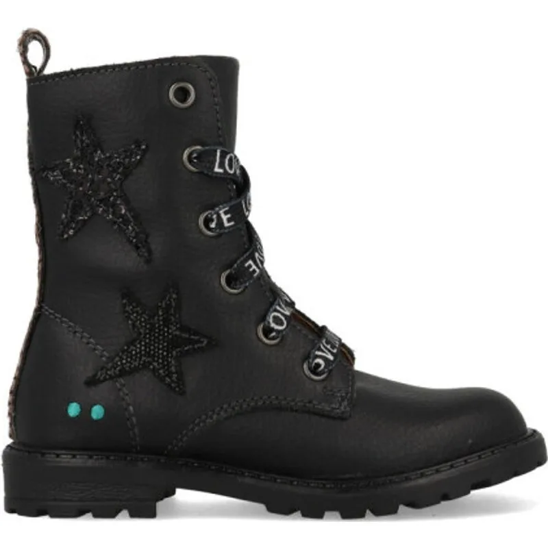 BunniesJR 221861589 Meisjes Biker Boots Zwart Leer Veters
