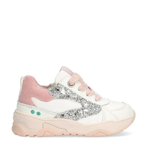 BunniesJR Ciske Chunky leren sneakers met glitters wit/roze