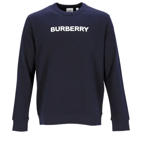 Blauwe Burberry trui met logo-opdruk op de borst. 100% Katoen. Land van herkomst: China.