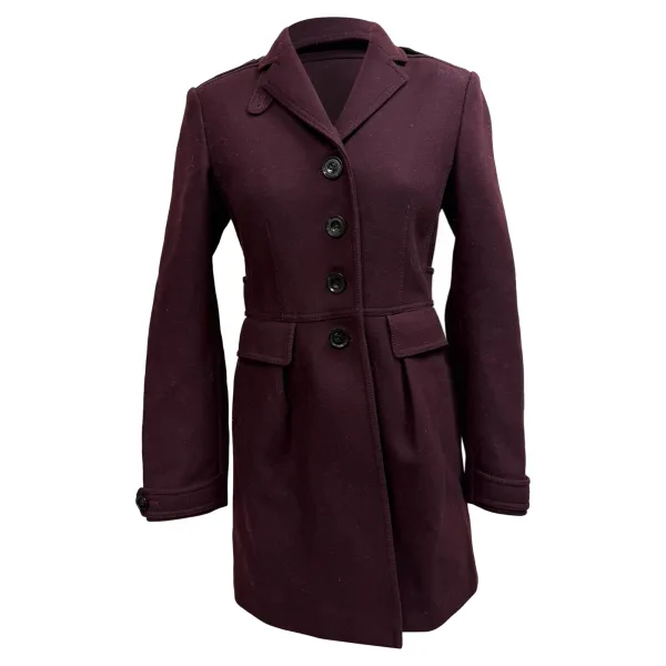 Specificaties: Burberry Brit single-breasted korte jas in bordeauxrode wol