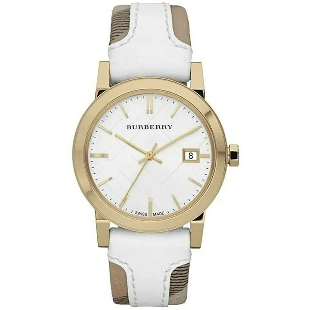 Burberry BU9110 Leer Wit Groot Ruit Vrouwenhorloge Prijzen