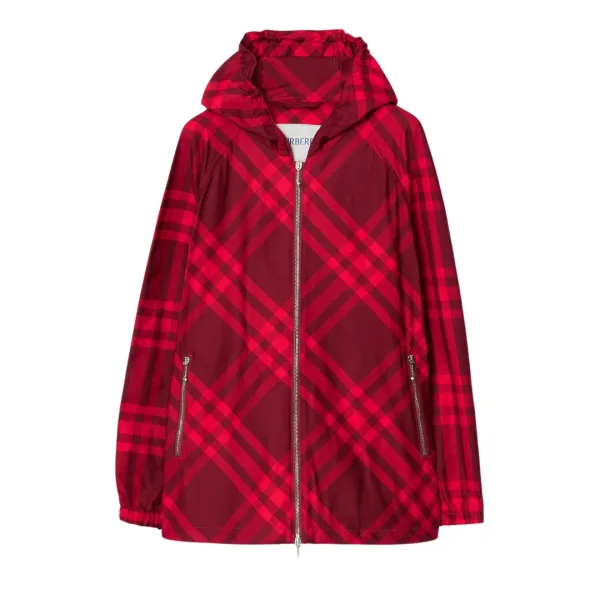 Burberry geruit nylon capuchonjack rood geruit jack Prijzen