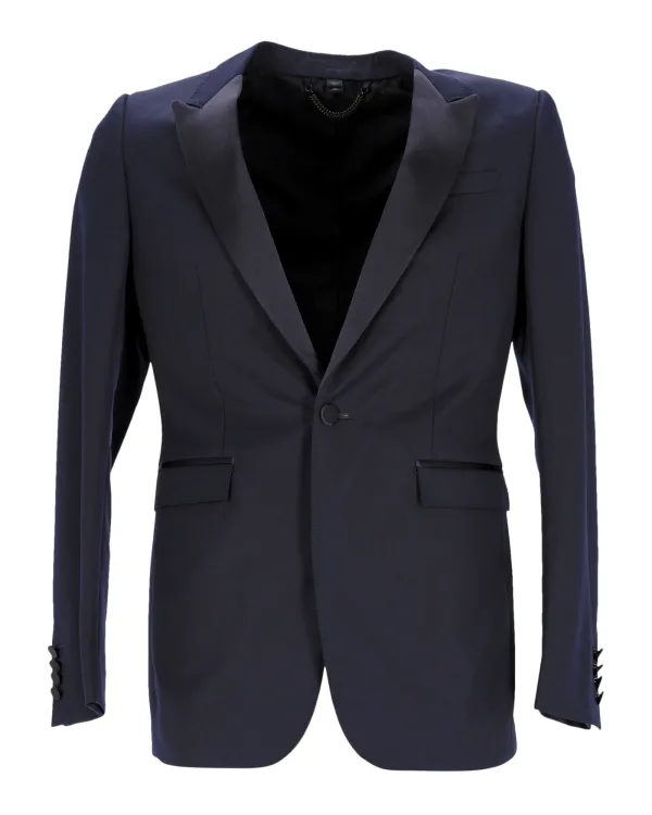 Specificaties: Burberry Smoking Jacket in Navy Blauw Virgin Wol