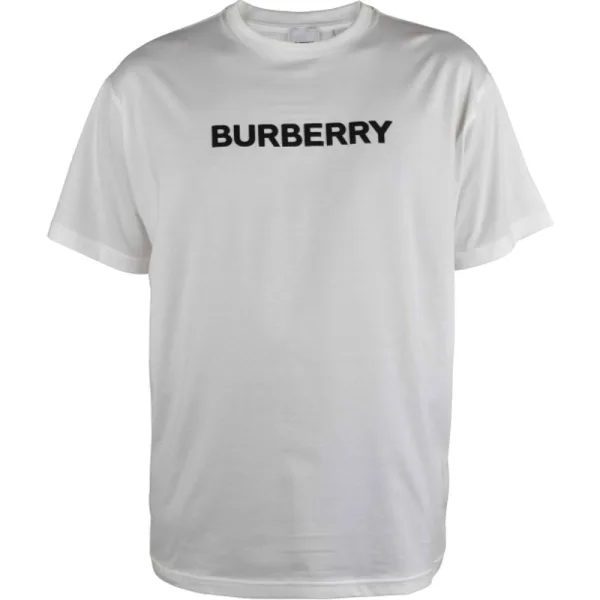 Wit T-shirt met korte mouwen Burberry.Zwart logo in reliëf in het midden.Ronde hals met ribbels.Katoen.