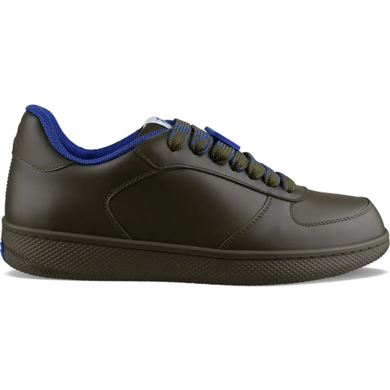 Sneakers Burberry Terrace lage sneakers van donkergroen leer.Tong met logopatch.Leren achterkant met logo.Tweekleurige blauwe en groene vetersluiting met blauwe badge.Platte rubberen zool.Made in Italy.