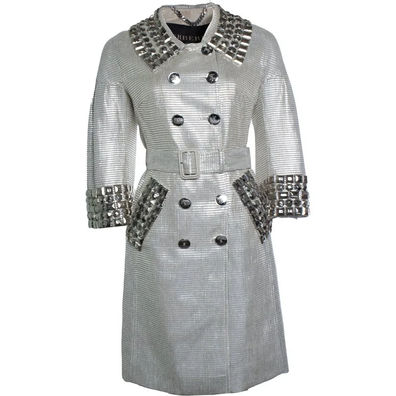Specificaties: Burberry, zilverkleurige metallic trenchcoat