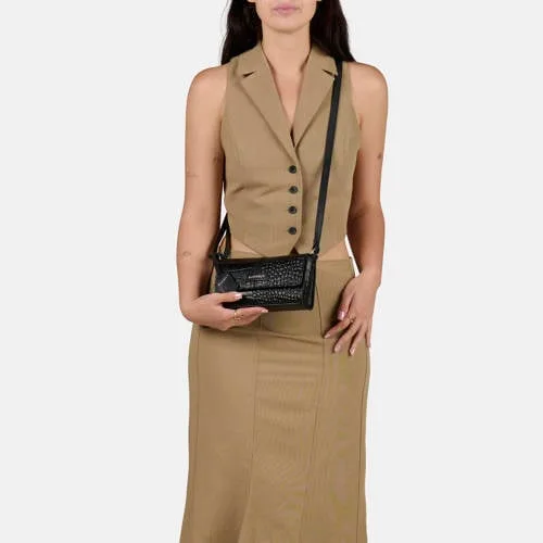 Design: Ruim hoofdvak, Ritsvak binnen, Verstelbare riemen; Type sluiting: Magnetische sluiting; Materiaal: Leer; Motief: Dierenprint; Materiaal: Glad leer; Extra's: Label patch/label flag, Op staal naden, Reptile look; Maat: Klein; Hengsellengte: Lange schouderriemen