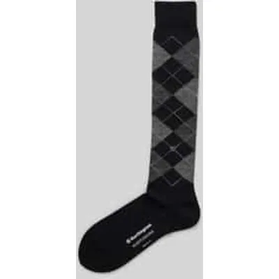 Kniekousen van Burlington voor dames;Scheerwolmix;Model 'Marylbone';Argyleprint;Logo-applicatie;Logoprint