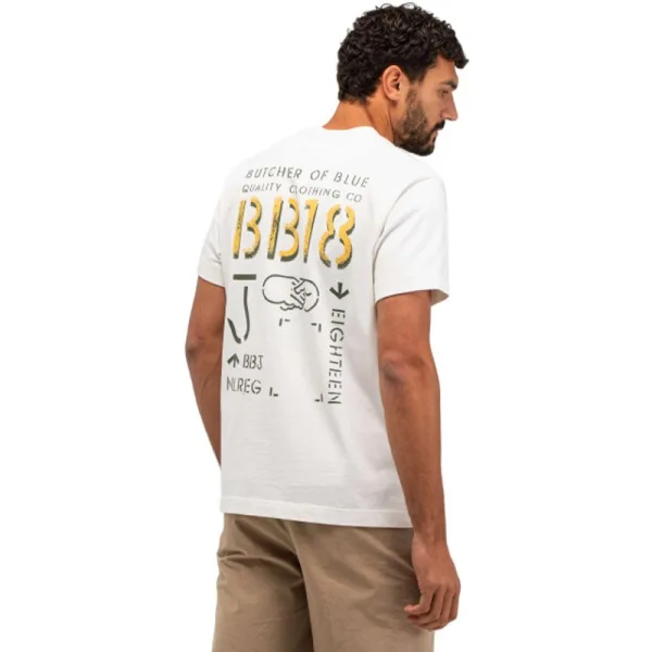 Dit heren T-shirt van Butcher of Blue in off white voelt zacht door het organisch katoen. De ronde hals en loose fit geven je een relaxte, ruimvallende look die soepel valt. Een kleine print op de borst en een royale print op de rug zorgen voor een moderne twist. Mooi op jeans of short voor een frisse, heldere stijl.