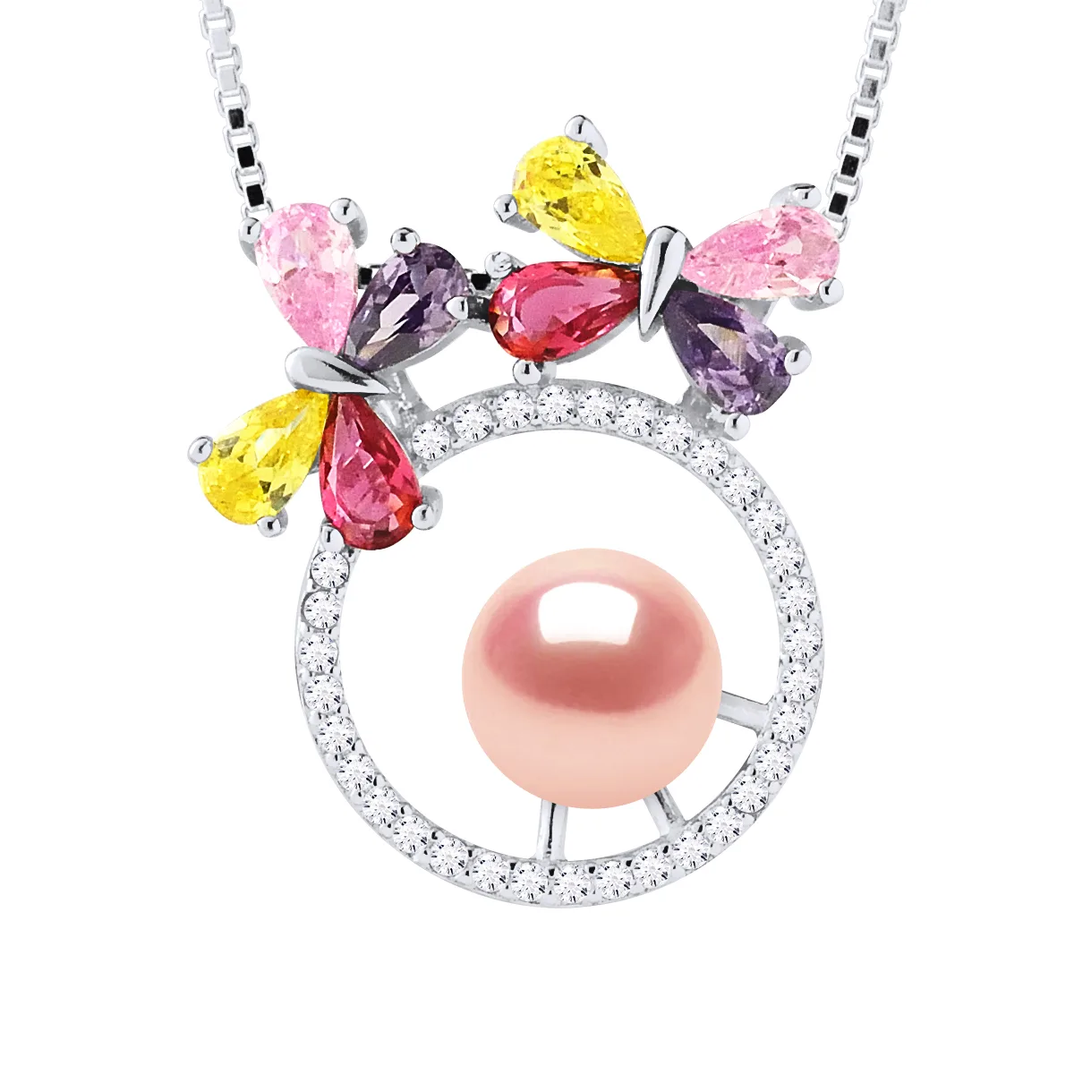 Ketting - Zoetwaterparel Ronde 8-9 mm - Entourage oxides mutlicolores - Box Chain Rhodium 925 duizendste - Lengte: 42 cm - Wordt geleverd in een koffer met een certificaat van echtheid en een internationale garantie - Al onze juwelen zijn gemaakt in Frankrijk.