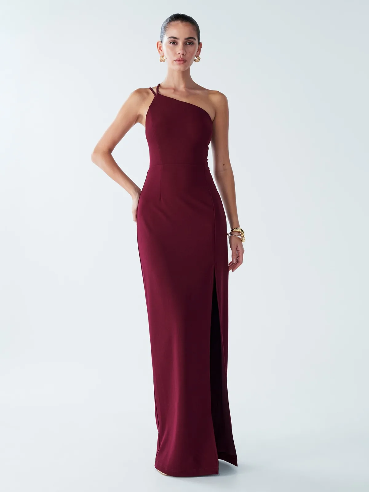 Design: Gevoerde zoom/rand, Beenopening; Type sluiting: Ritssluiting; Motief: Effen; Soort bandjes: One-shoulder; Extra's: Op staal naden, Voelt zacht aan; Lengte: Lang/maxi; Snit: Figuur omarmend; Pasvorm: Aansluitende pasvorm; Armlengte: Mouwloos