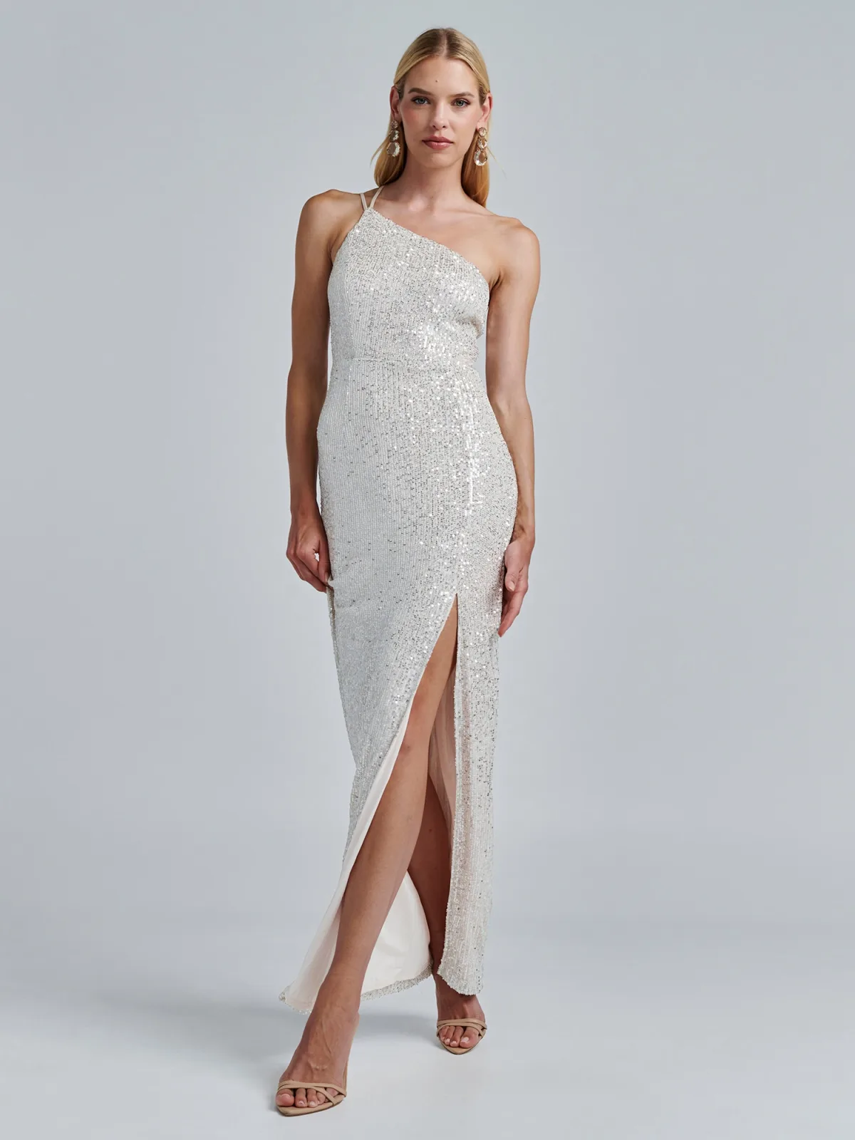 Design: Beenopening, Ritszakken aan de zijkant; Type sluiting: Ritssluiting; Motief: Effen; Soort bandjes: One-shoulder; Extra's: Glanzend, Met textuur; Lengte: Lang/maxi; Snit: Figuur omarmend; Pasvorm: Aansluitende pasvorm; Armlengte: Mouwloos