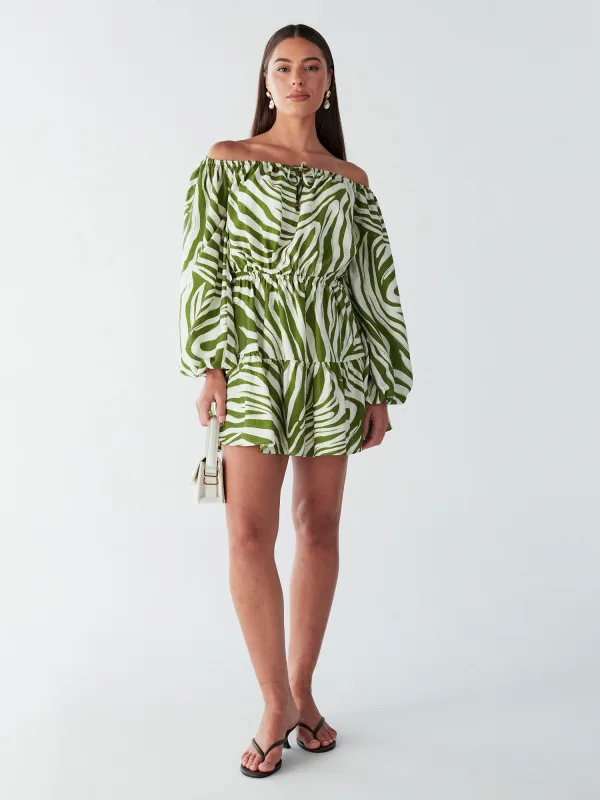 BWLDR Jurk ‘BRIA MINI DRESS’ olijfgroen / wit Prijzen