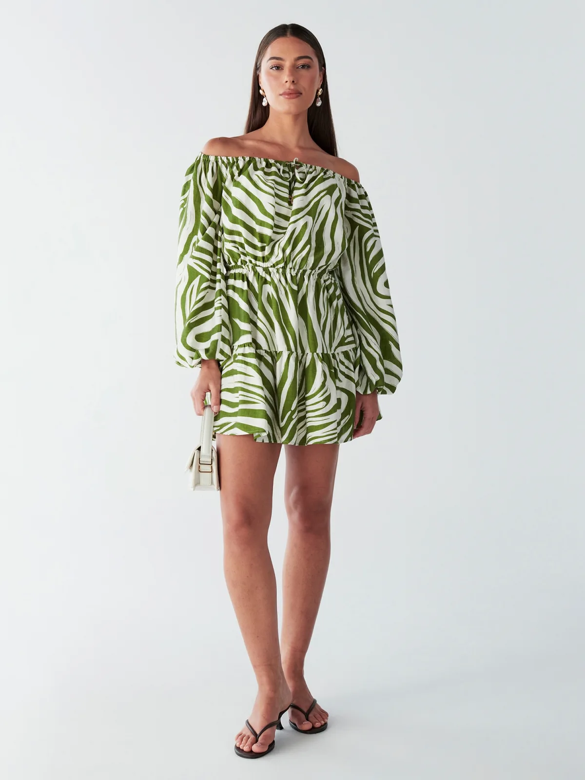 Specificaties: BWLDR Jurk ‘BRIA MINI DRESS’ olijfgroen / wit