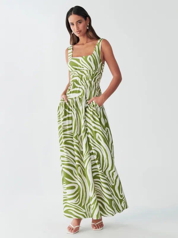 Materiaal: Viscose; Halstype: Carréhals; Soort bandjes: Normale bandjes; Details: Gedrapeerd; Lengte: Lang/maxi; Pasvorm: Normale pasvorm; Armlengte: Mouwloos