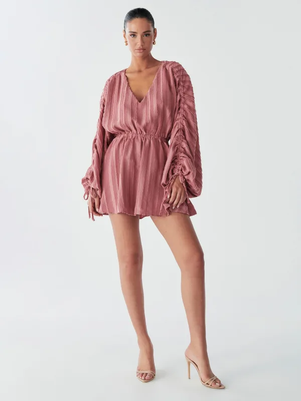 Design: Met band/snoer, Pofmouwen, Tailleband; Halstype: V-hals; Motief: Gestreept; Details: Gedrapeerd; Extra's: Gestructureerd oppervlak; Lengte: Kort/mini; Pasvorm: Normale pasvorm; Armlengte: Lange mouw