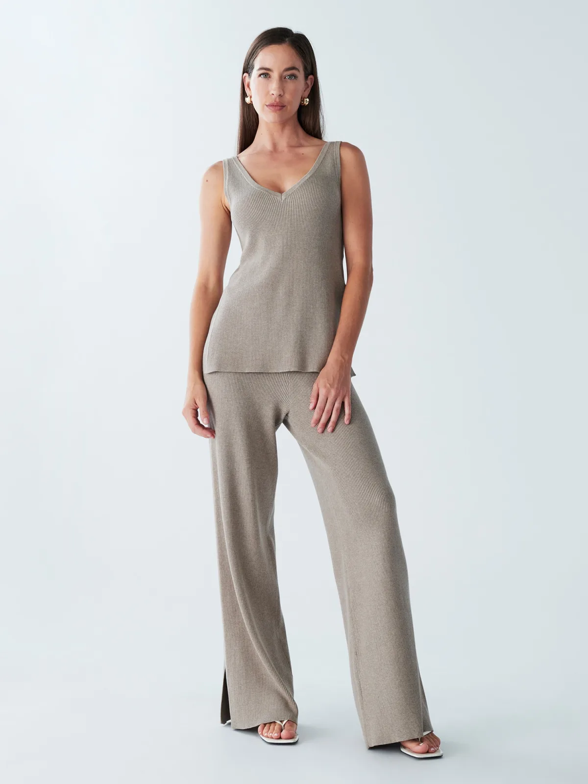 Design: Geribbeld gebreid; Materiaal: Jersey; Halstype: V-hals; Motief: Effen; Soort bandjes: Normale bandjes; Pasvorm: Normale pasvorm; Armlengte: Mouwloos; Lengte: Normale lengte