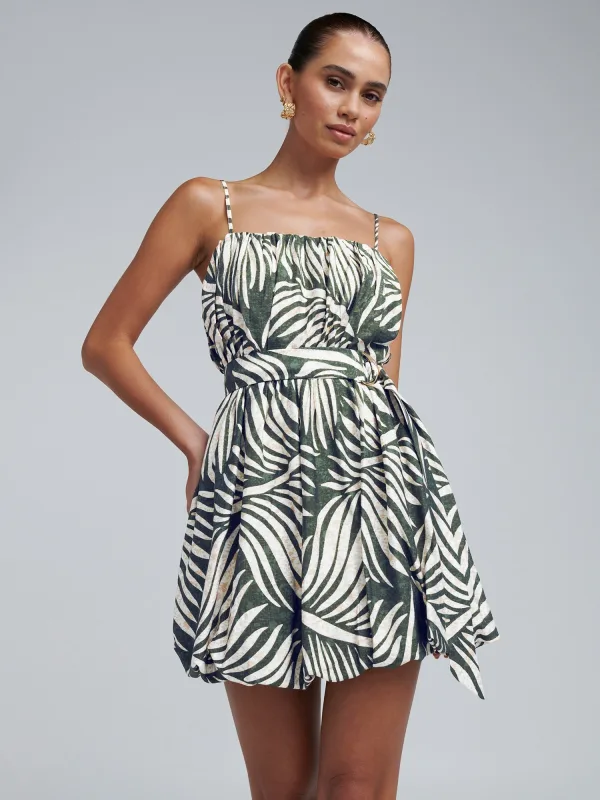 Design: Elastische taille/zoom, Tailleriem; Type sluiting: Ritssluiting; Materiaal: Katoen; Halstype: Carréhals; Motief: Bloemenprint; Soort bandjes: Spaghettibandjes; Details: Plooien, Gedrapeerd; Extra's: All-over patroon, Gladde stof; Lengte: Kort/mini; Snit: Uitlopend; Pasvorm: Slanke pasvorm; Armlengte: Mouwloos