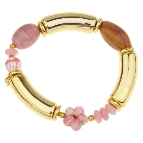 Voeg een zachte kleurnuance toe aan je look met deze goudkleurige dames armband van By Jam Gioielli. De combinatie van goudkleurig met roze details geeft een frisse, moderne uitstraling die zowel bij een casual outfit als bij een nette blouse past. Dankzij het ontwerp zonder sluiting schuif je de armband eenvoudig om je pols, ideaal als je graag snel klaar wilt zijn maar toch verzorgd voor de dag wilt komen.Verfijnde mix van materialen Gemaakt van 25% keramiek, 25% plastic, 25% rvs en 25% steen voor een speelse textuur en uitstraling Goudkleurig met roze accenten, passend bij zowel neutrale als kleurrijke outfits Ontwerp zonder sluiting, zodat je de armband gemakkelijk om en af doet Geschikt om solo te dragen of te combineren met andere dunne armbandenAltijd passend bij jouw stijlDeze armband is een subtiel detail dat je dagelijkse look afmaakt. Draag de armband bij een simpel T-shirt en jeans voor een klein kleuraccent, of combineer met meerdere sieraden rond je pols voor een meer opvallende stijl. Het lichte draaggevoel maakt het een sieraad dat je de hele dag door comfortabel om houdt.Sieraden van By Jam GioielliBy Jam Gioielli staat bekend om sieraden met een modieuze, toegankelijke uitstraling. De collecties sluiten aan bij de trends van nu en zijn ontworpen om makkelijk te combineren. Zo stel je zonder moeite een persoonlijke sieradenset samen die past bij jouw dagelijkse leven.Een stijlvolle keuze als je op zoek bent naar een goudkleurige armband met een subtiele roze touch.