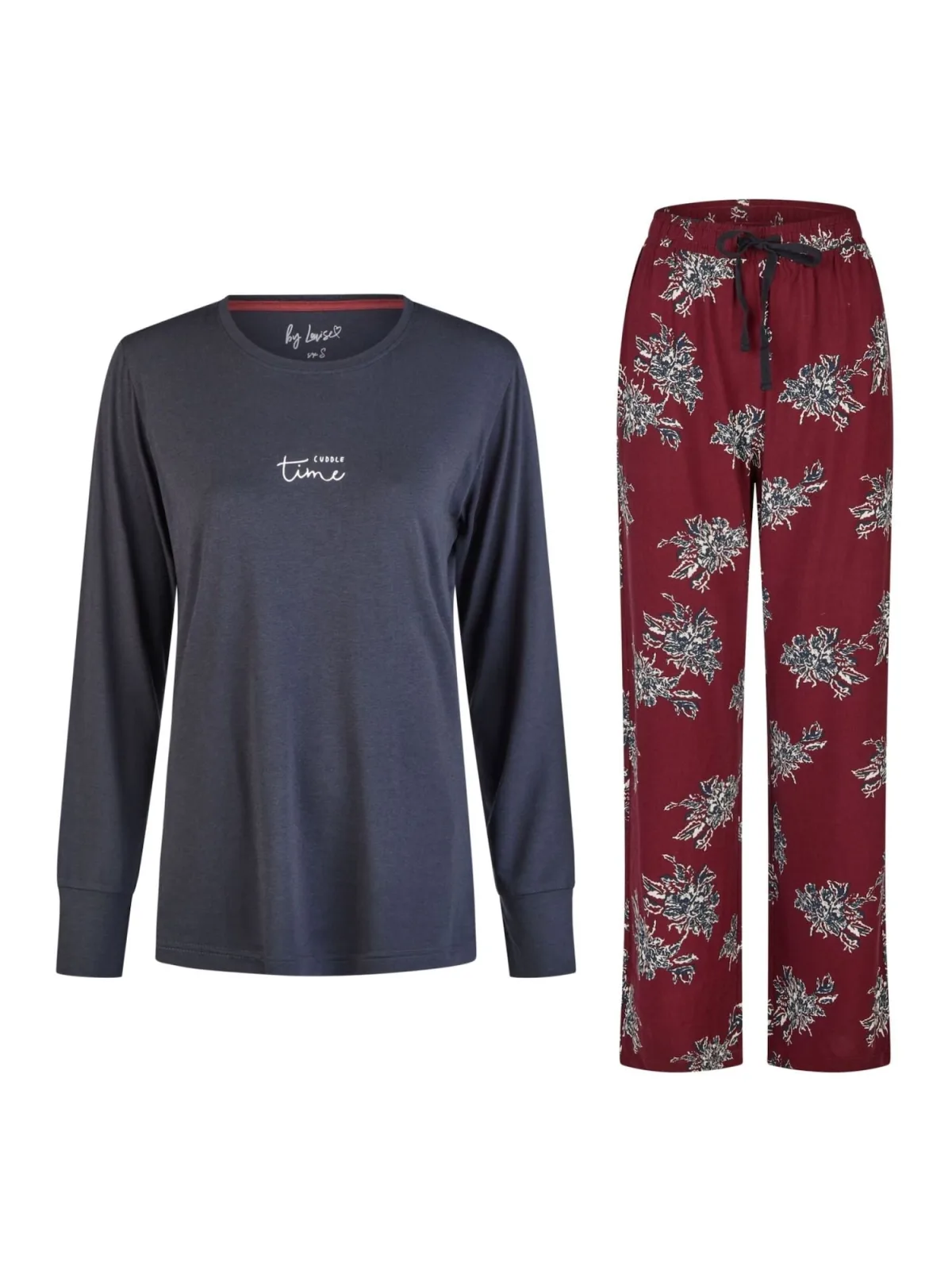 Specificaties: By Louise Pyjama donkergrijs / bloedrood