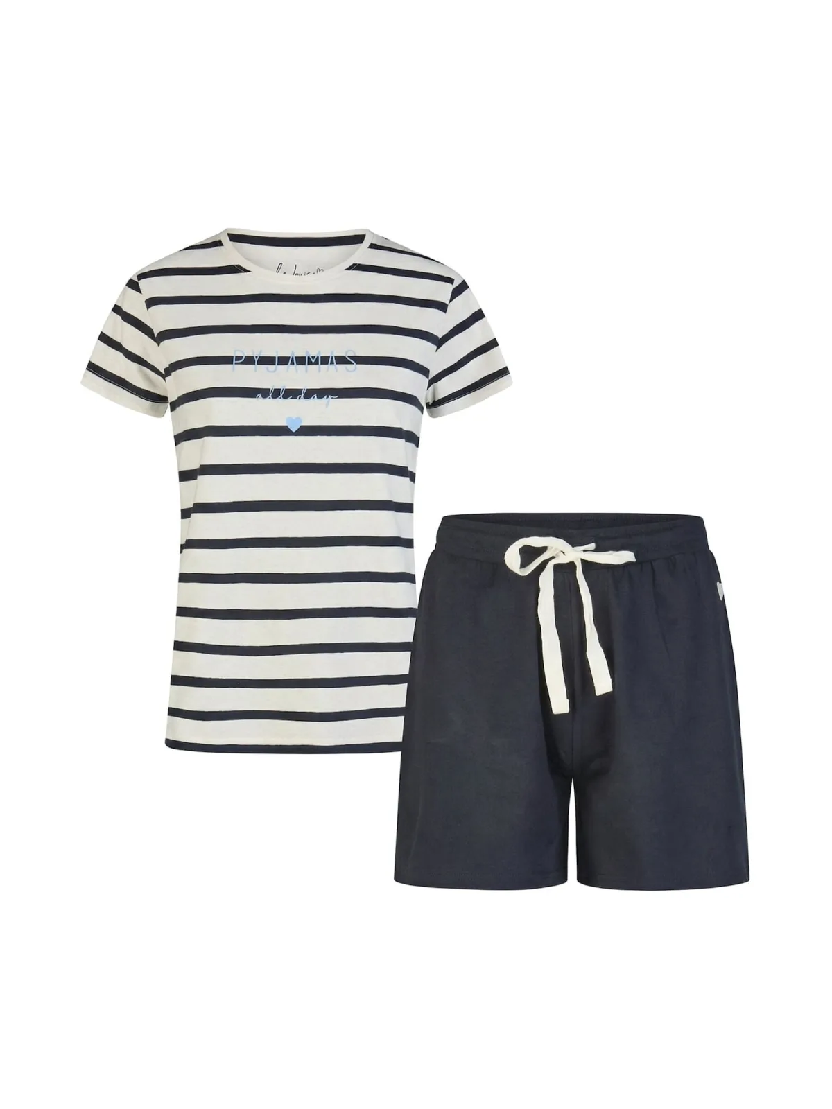 By Louise Dames korte pyjama set shortama wit/donkerblauw gestreept