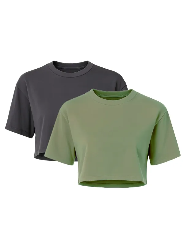 Design: Gevoerde zoom/rand, Geribbelde kraag, Overcut schouder; Materiaal: Jersey; Halstype: Ronde hals; Motief: Effen; Extra's: Op staal naden, Voelt zacht aan; Pasvorm: Normale pasvorm; Aantal: 2 Pack; Armlengte: Kwartmouw; Lengte: Korte pasvorm