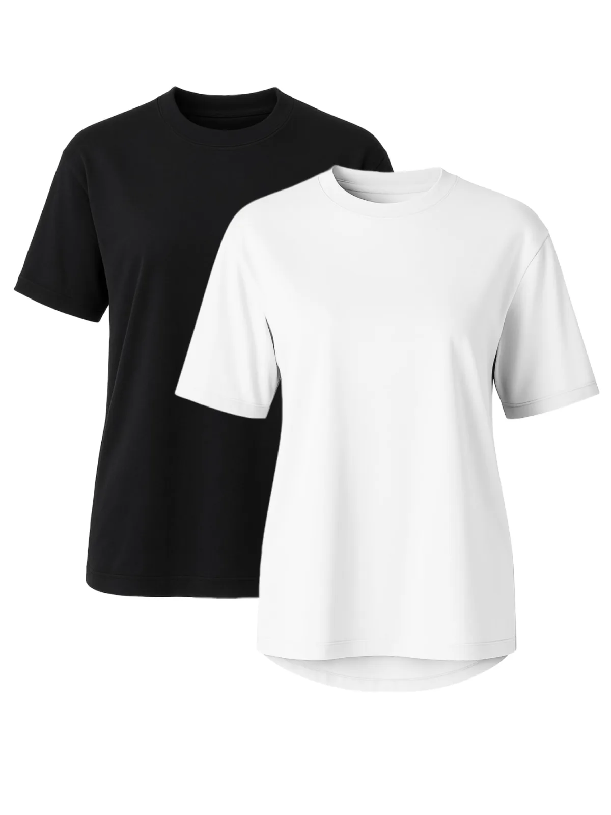 Design: Gevoerde zoom/rand, Geribbelde kraag, Nektape; Materiaal: Jersey; Halstype: Ronde hals; Motief: Effen; Extra's: Op staal naden, Voelt zacht aan; Pasvorm: Normale pasvorm; Aantal: 2 Pack; Armlengte: Kwartmouw; Lengte: Normale lengte