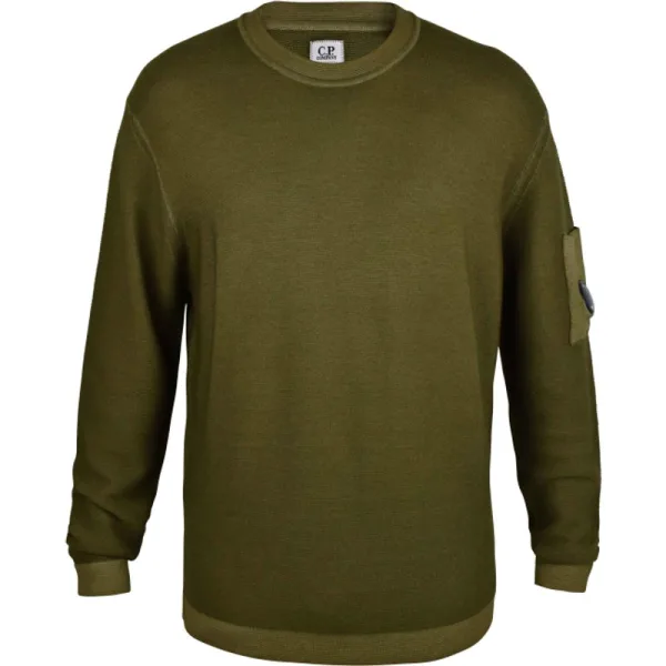 C.P. Company sweatshirt in capres groen.Gebreid sweatshirt.Ronde hals met volle mouwen.C.P. Company logopatch op de linkermouw.100% wol.