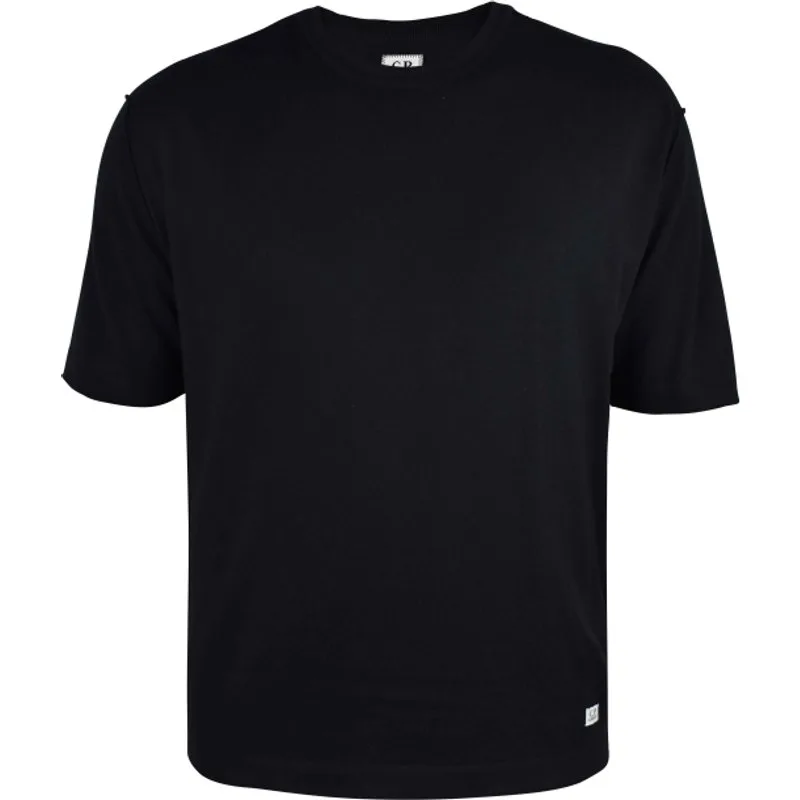 C.P. Company fijngebreid T-shirt van zwart katoen.Korte raglanmouwen met ronde hals.Logotag linksonder.Relaxte/comfortabele gebreide stijl.Minimale C.P. Company merkopdruk.100% Katoen.