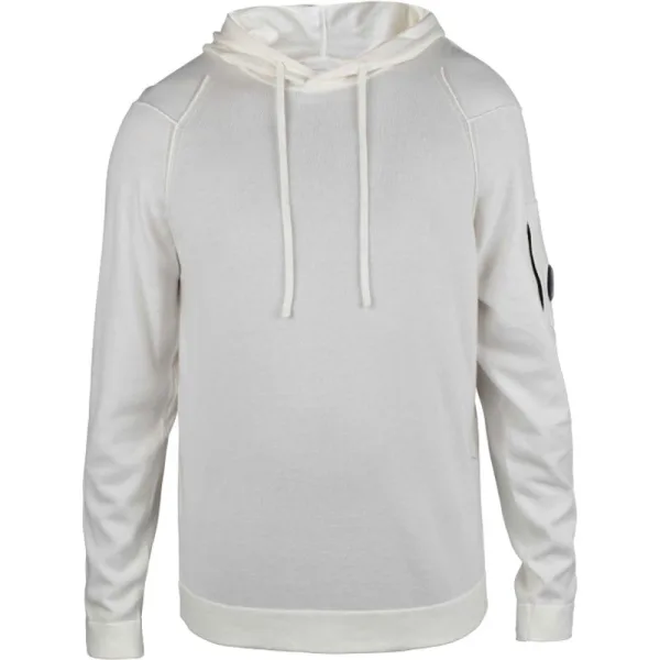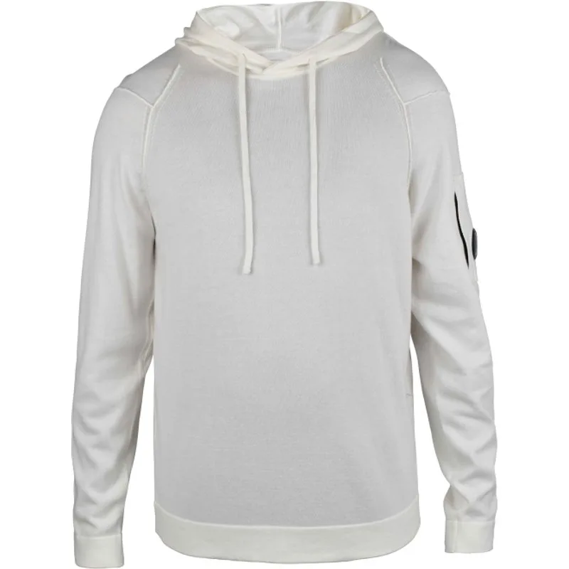 C.P. Company gebreide sweater hoodie in wit.Capuchon met trekkoord.Casual streetwear-stijl.Lange mouwen.C.P. Company logo op de linkerarmzak.100% katoen.