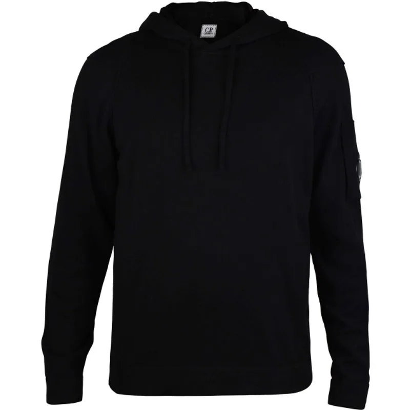 C.P. Company gebreide sweater hoodie in zwart.Capuchon met trekkoord.Casual streetwear-stijl.Lange mouwen.C.P. Company logo op de linkerarmzak.100% katoen.