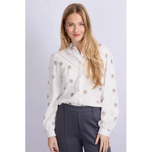 Maak je dagelijkse look compleet met de C&S The Label Loïs blouse. Deze damesblouse is gemaakt van 100% katoen en combineert een luchtig draaggevoel met een moderne uitstraling. De all over print valt direct op in je outfit, terwijl de opstaande kraag en lange mouwen zorgen voor een nette, verzorgde uitstraling.Verfijnde details voor elke dag Gemaakt van 100% katoen voor een zachte, comfortabele touch op de huid Lange rechte mouwen voor een rustig silhouet Opstaande kraag die een moderne, cleane uitstraling geeft Knoopsluiting aan de voorkant voor makkelijk aan- en uittrekken All over print die direct zorgt voor een duidelijk patroon Open detail als subtiel accent voor een verfijnde afwerking Zonder borstzakken voor een rustige voorkantVan werkdag tot weekendmomentDeze blouse is geschikt voor uiteenlopende momenten. Draag de Loïs naar kantoor voor een nette, maar ontspannen uitstraling of kies deze in het weekend met een comfortabele broek voor een meer casual gevoel. De rechte mouwen en het soepele katoen maken bewegen makkelijk, ook op drukke dagen.C&S The Label: eigentijds en betrouwbaarC&S The Label staat voor draagbare mode met een moderne twist. De collecties zijn ontworpen met aandacht voor pasvorm, details en eenvoud in het dagelijks combineren. Zo voeg je met de Loïs blouse een vaste basis toe aan je garderobe.Een veelzijdige blouse die je garderobe op een rustige en verzorgde manier aanvult.