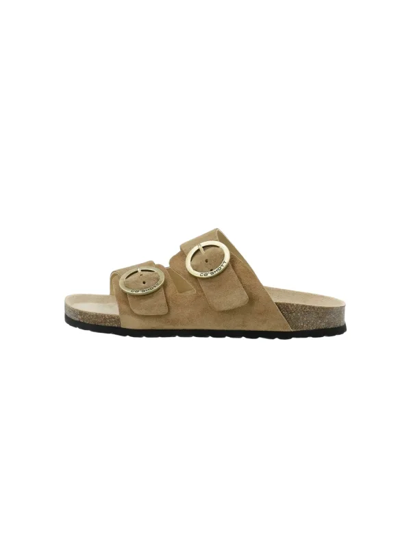 Design: Anatomisch gevormd voetbed, Lichte EVA-zool, Zool van kurk, Gesp; Type sluiting: Slip; Materiaal: Leer; Motief: Effen; Materiaal: Suède; Schoenneus: Open toe; Extra's: Stevige stof; Hakhoogte: Platte hak (0-3 cm)