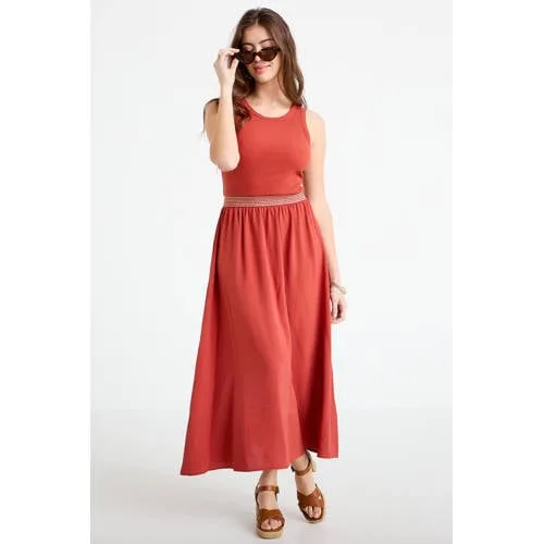 Voor zonnige dagen waarop je moeiteloos verzorgd voor de dag wilt komen, is deze Cache Cache A-lijn zomerjurk een optie waar je vaak naar zult grijpen. De jurk is lang, mouwloos en heeft een elegante V-hals, waardoor een luchtige en vrouwelijke look ontstaat. Door de effen kleur combineer je de jurk eenvoudig met je favoriete sandalen, sneakers of een licht vest.Details die je elke dag kunt dragen Gemaakt van katoen, dat prettig aanvoelt op de huid en geschikt is voor warme dagen A-lijn model dat soepel langs het lichaam valt voor een ontspannen silhouet Lang model, ideaal als zomerse jurk voor werk, terras of vakantie Mouwloos ontwerp met V-hals voor een open en frisse uitstraling Geen sluiting, je trekt de jurk eenvoudig over je hoofd aan Geen zakken voor een rustige, strakke belijning Valt klein, handig om rekening mee te houden door een maat groter te kiezenEen lange jurk voor zonnige momentenDeze jurk is ideaal op warme dagen waarop je er verzorgd uit wilt zien zonder lang na te denken over je outfit. Draag de jurk met slippers naar het strand of met een mooie sandaal en een lichte sjaal voor een etentje op een terras.Cache Cache: eigentijdse mode voor elke dagCache Cache staat voor toegankelijke damesmode met een moderne uitstraling. De collecties worden ontworpen met aandacht voor pasvorm en draaggemak, zodat je kledingkastvriendelijk is en je items vaak en lang kunt dragen.Een luchtige zomerjurk die je eenvoudig stylet voor zowel relaxte als nettere momenten.