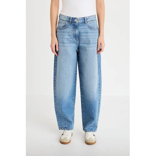 Deze Cache Cache dames barrel jeans is een moderne basisbroek met een comfortabele regular waist en een karakteristieke, iets rondere pijpvorm. De lange lengte en het effen design maken deze jeans geschikt voor uiteenlopende gelegenheden, van een ontspannen dag thuis tot een casual werkdag. De stevige denim voelt ondersteunend aan en behoudt zijn vorm tijdens het dragen.Doordachte details voor dagelijks gemak Gemaakt van honderd procent katoen voor een klassiek denimgevoel Regular waist die rond de taille prettig aansluit Barrel jeans model met iets ruimere pijpen 5 pocket ontwerp met twee achterzakken, twee steekzakken en een muntzakje Rits en knoopsluiting voor een betrouwbare en stabiele sluiting Riemlussen zodat een riem eenvoudig toegevoegd kan worden Effen uitvoering die goed combineert met verschillende tops Maatadvies: valt klein, een maat groter kiezen geeft extra draagcomfortCasual stijl voor elke dagMet deze lange barrel jeans ontstaat snel een ontspannen look. De pasvorm biedt ruimte rond de benen en blijft tegelijk netjes bij de taille, wat prettig is tijdens langere dagen onderweg of op kantoor.Cache Cache als vertrouwde keuzeCache Cache richt zich op eigentijdse damesmode met toegankelijke modellen en herkenbare pasvormen. De focus op draagbaarheid en consistente kwaliteit maakt dit merk een betrouwbare keuze voor de dagelijkse garderobe.Een comfortabele denim basis die moeiteloos meebeweegt met de dag.