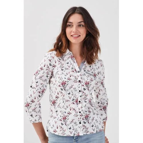 Deze blouse voor dames van Cache Cache is gemaakt van een polyamidemix en heeft een bloemenprint. Het model heeft een klassieke kraag en 3/4 mouwen. De blouse heeft een knoopsluiting.details van deze blouse:1 borstzak