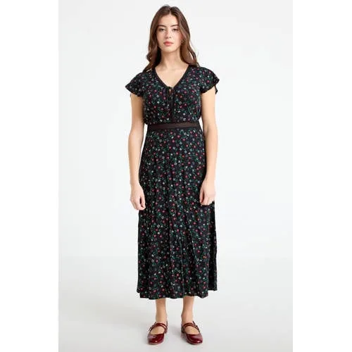Cache Cache gebloemde midi jurk zwart