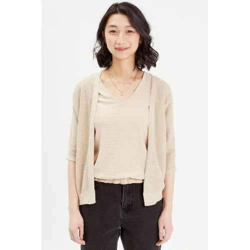 Dit vest voor dames van Cache Cache is gemaakt van een katoenmix. Het model heeft een openvallende hals en 3/4 mouwen.details van vest:lurex