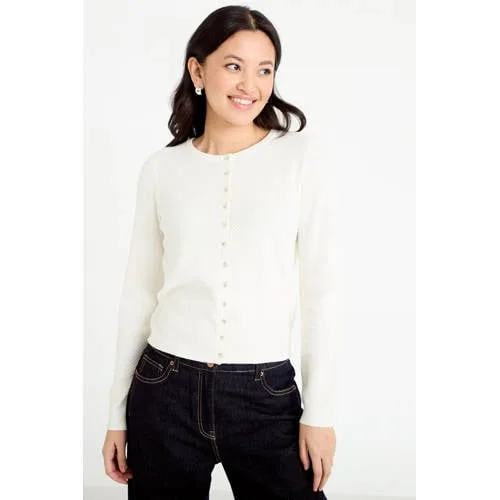 Zoek je een licht extra laagje voor frisse lentedagen, dan is dit kort gebreid vest voor dames een praktische keuze. Het ecru vest heeft een opengewerkt breisel dat subtiel de huid laat doorschijnen en meteen wat structuur geeft aan je outfit. De ronde hals en knoopsluiting zorgen voor een rustige, tijdloze basis die je makkelijk combineert met je favoriete items.Licht vest met opengewerkt breisel Kort gebreid vest met ronde hals en lange mouwen Knoopsluiting aan de voorkant voor verschillende draagopties Opengewerkt effect voor een luchtige en elegante uitstraling Gemaakt van negentig procent katoen en tien procent polyamide, voelt zacht en licht aan op de huid Effen ecru kleur, makkelijk te combineren met andere tinten Geschikt voor dagelijkse looks in het voorjaar Verkrijgbaar in maat XS tot en met XL Valt klein, kies bij twijfel een maat groter voor meer comfortStyling en onderhoud in het dagelijks levenVoor een gestroomlijnd silhouet komt dit korte vest goed tot zijn recht op een aansluitende broek met enkellaarsjes. Liever een wat lossere look, combineer het dan met een korte, zwierige rok en loafers. Het vest blijft het mooist als je het in de wasmachine op dertig graden wast op een fijnwasprogramma. Laat het plat drogen om de vorm te behouden en strijk op lage temperatuur tot maximaal 110 graden.Cache Cache, mode voor alledagCache Cache is een modemerk dat zich richt op toegankelijke damesmode voor elke dag. De collecties volgen de actuele trends, maar blijven draagbaar en praktisch. Met dit vest van Cache Cache voeg je een veelzijdig kledingstuk toe aan je garderobe, dat je eenvoudig aanpast aan je eigen stijl.Een licht, gebreid vest dat je het hele seizoen door blijft pakken.