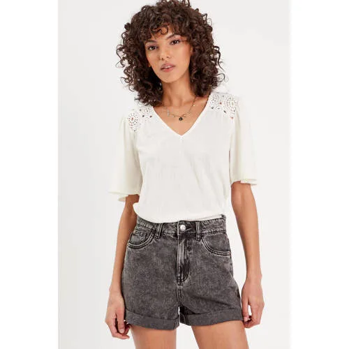 Deze top voor dames van Cache Cache is gemaakt van polyester. Het model heeft een V-hals en korte mouwen.details van deze top:wijde mouwengehaakt
