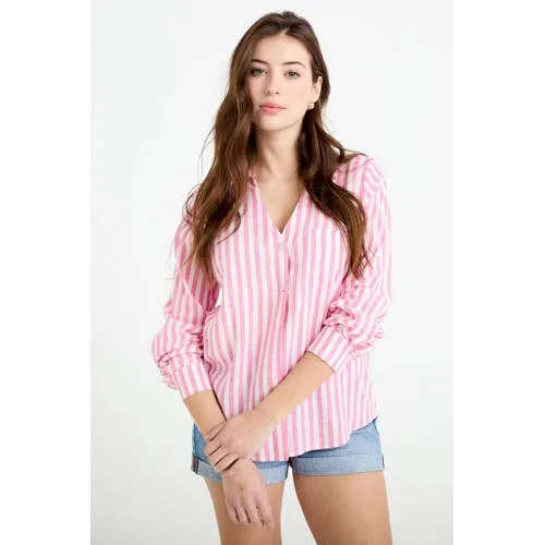 Met dit roze gestreepte overhemd van Cache Cache geef je jouw dagelijkse outfits een frisse, moderne basis. De rechte pasvorm valt losjes om het lichaam en zorgt samen met de klassieke kraag en lange mouwen voor een tijdloze, nette uitstraling. Deze linnen dames blouse is gemaakt van linnen en viscose, waardoor de stof licht en luchtig aanvoelt, ideaal voor het voorjaar en zachte zomerdagen.Belangrijke kenmerken op een rij Klassiek overhemdmodel met kraag en knoopsluiting Lange, rechte mouwen voor een nette look Rechte pasvorm die het silhouet subtiel volgt Gemaakt van linnen en viscose voor een lichte, soepele stof Gestreept dessin in roze tinten voor een rustige, frisse uitstraling Met borstzak voor een extra casual detail Beschikbaar in maat 34 tot en met 46 Dit artikel valt klein, een maat groter bestellen wordt aangeraden Wasbaar op 30°C, bij voorkeur op een fijnwasprogramma en aan de lucht laten drogenVan werkdag tot weekendVoor een moderne, dagelijkse look combineer je dit overhemd met een slim fit broek en loafers. Liever wat meer vrouwelijk, dan staat het mooi op een vloeiende midi-rok met enkellaarsjes. Ook open over een T-shirt met een jeans creëer je eenvoudig een ontspannen weekendoutfit.Cache Cache, elke dag draagbare modeCache Cache richt zich op draagbare mode voor elke dag, met ontwerpen die makkelijk te combineren zijn en prettig aanvoelen. De collecties volgen de trends, maar blijven toegankelijk en praktisch in gebruik. Zo vul je je garderobe met items waar je in het dagelijks leven echt iets aan hebt.Een lichte, gestreepte basic waar je het hele seizoen naar teruggrijpt.