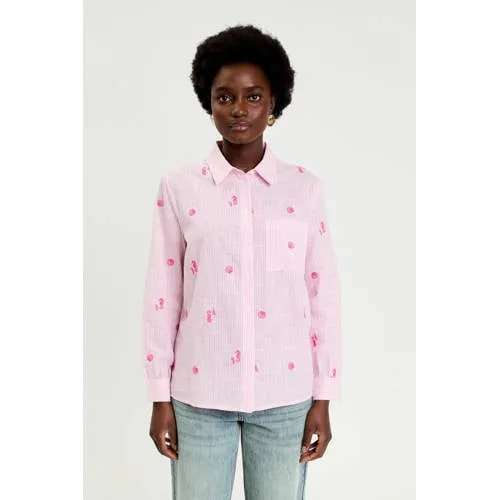 Deze Cache Cache dames blouse katoen streep is een tijdloze toevoeging aan de garderobe. De blouse is gemaakt van honderd procent katoen en voelt prettig aan op de huid. De lange mouwen en de klassieke kraag geven een verzorgde uitstraling. De gestreepte print zorgt voor een rustig lijnenspel, terwijl de subtiele borduursels voor extra detail zorgen. Door de knoopsluiting is de blouse eenvoudig aan en uit te trekken.Verzorgde details voor elke dag Gemaakt van honderd procent katoen voor een comfortabele draagervaring Lange mouwen voor extra bedekking en een nette look Klassieke kraag voor een tijdloos silhouet Knoopsluiting over de volledige lengte aan de voorkant Gestreepte print met fijne borduursels als stijlvol detail Zonder borst of steekzakken voor een rustige voorkant Valt klein volgens het maatadvies, een maat groter wordt geadviseerdGeschikt voor diverse momentenMet deze blouse ontstaat eenvoudig een verzorgde outfit voor naar kantoor, een etentje of een dagje weg. Het katoenen materiaal draagt prettig gedurende de dag en de strepen blijven de blik vangen zonder te overheersen.Cache Cache als vertrouwde keuzeCache Cache richt zich op moderne collecties met doordachte details en draagbare pasvormen. Het merk combineert eigentijdse ontwerpen met materialen die prettig aanvoelen, zodat elk kledingstuk een betrouwbare basis vormt in de kledingkast.Een gestreepte blouse met borduursels die elke dag een verzorgd gevoel ondersteunt.