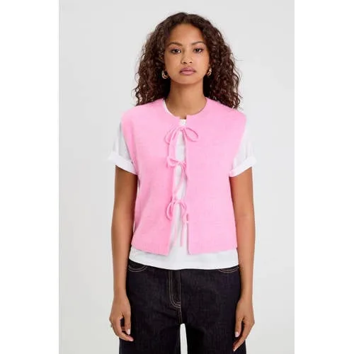 Dit gilet van Cache Cache is mouwloos en heeft een ronde hals. De striksluiting zorgt voor een makkelijke manier om het gilet te sluiten, je stylet dit model makkelijk in jouw look.